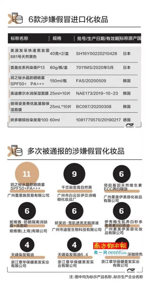 南都(dōu)大數據研究院曾梳理2018年以來國(guó)家及地方藥監部門通報的2000多批次不合格化妝品,經(jīng)監管部門現場核查及企業确認,其中398批次爲假冒或涉嫌假冒産品(染發(fā)膏占比69.6%,防曬霜/噴霧占比12.6%)。